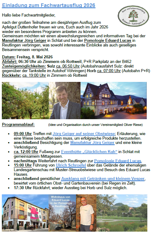 Jahresausflug der Fachwarte RW-TUT zur Gartenschau nach Balingen