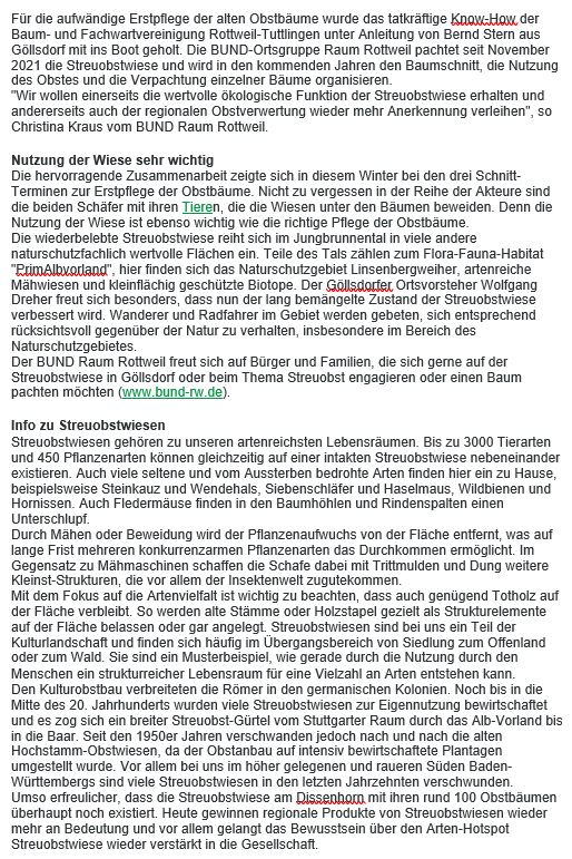 www.ogv-seedorf.de (Seedorf) www.ogv-waldmoessingen.de (Waldmössingen) www.streuobst-nachhaltiges-sulz.de (Sulz - Netzwerk Streuobst)