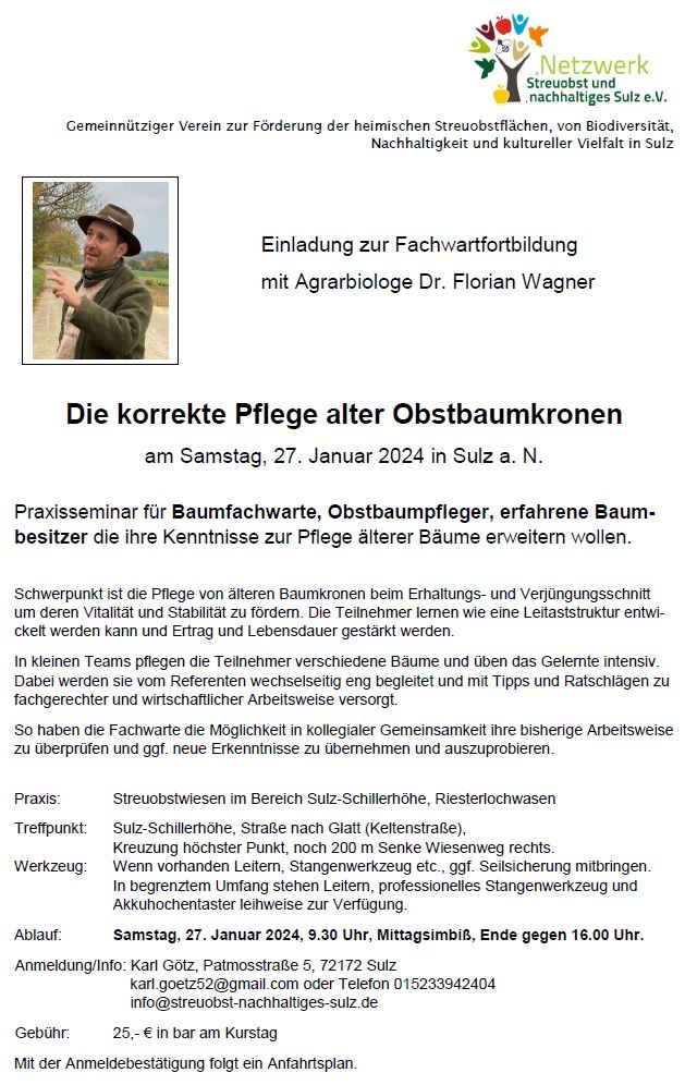 Praxisseminar „Die korrekte Pflege alter Obstbaumkronen“