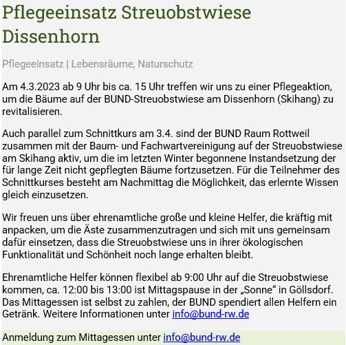 Baumschnittaktion 2023 mit BUND am Dissenhorn in Göllsdorf