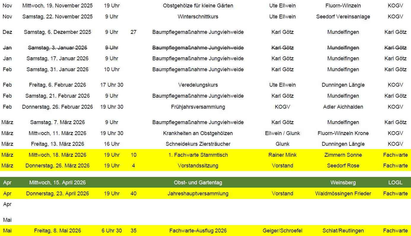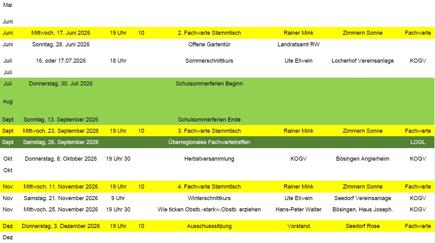 Jahresprogramm Fachwarte und KOGV 2026