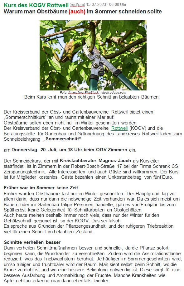Sommerschnitt 2023 mit Magnus Jauch beim OGV Zimmern